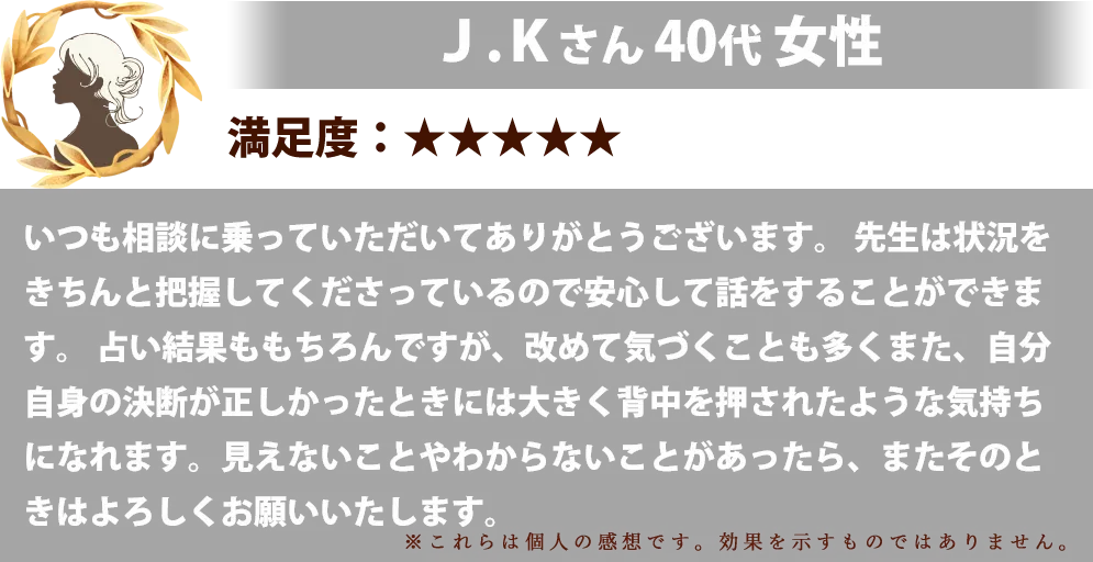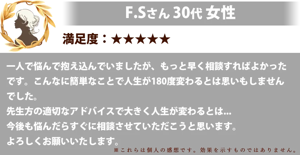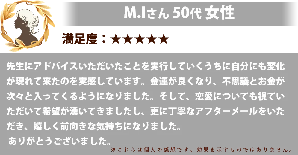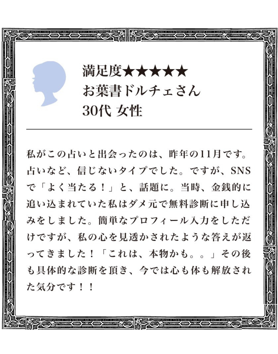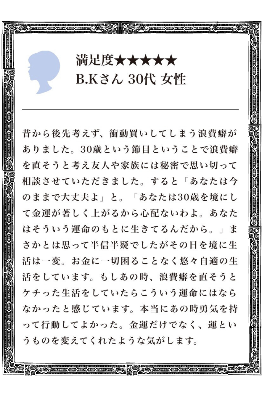ポイントを買うだけなので変なリスクもなく、鑑定料以上の幸せを手にできたと実感しています。